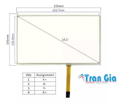 - Tấm cảm ứng công nghiệp 10.1 inch 235x143mm cáp 4 chân